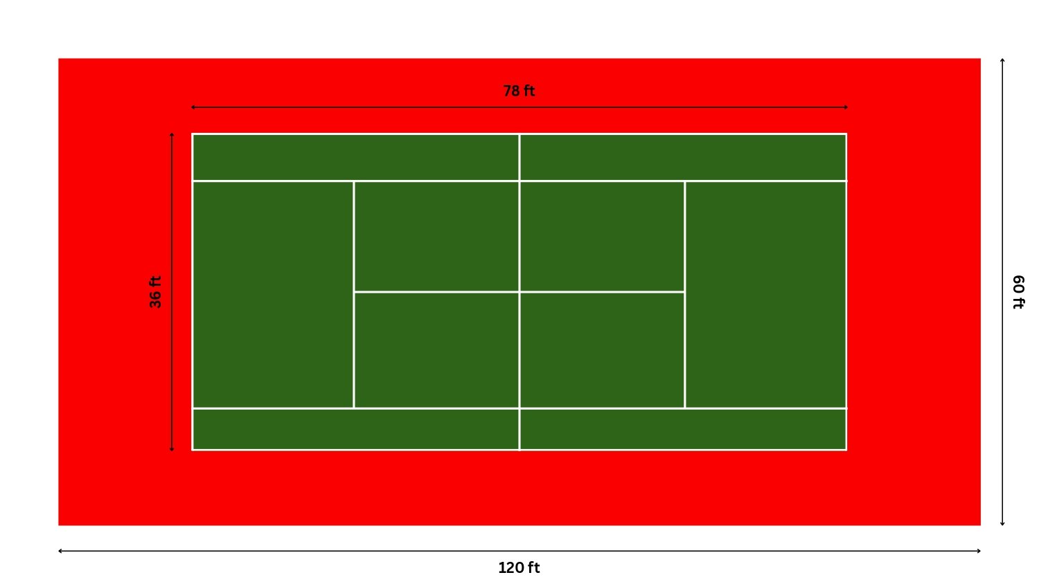 Lawn Tennis courts are compact yet dynamic, designed for quick reflexes and fast-paced rallies. Built to standard dimensions, they ensure fair play and consistent performance across both singles and doubles formats.